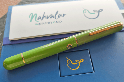 The Nahvalur 365 Anniversary Roiro Fountain Pen Jade is crafted in the brand’s iconic Nautilus-inspired shape, made from warm, lightweight ebonite and finished with layers of hand-applied urushi lacquer.